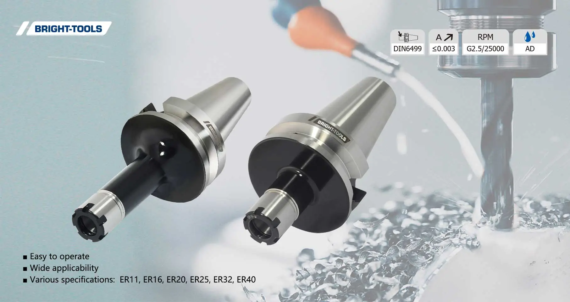 Il portautensili BBT-ER è un portautensili comunemente usato nella lavorazione delle macchine utensili. È composto da un corpo portautensili e una pinza ER. Viene utilizzato principalmente per fissare e fissare utensili da taglio a gambo dritto come la lavorazione di trapani e frese.