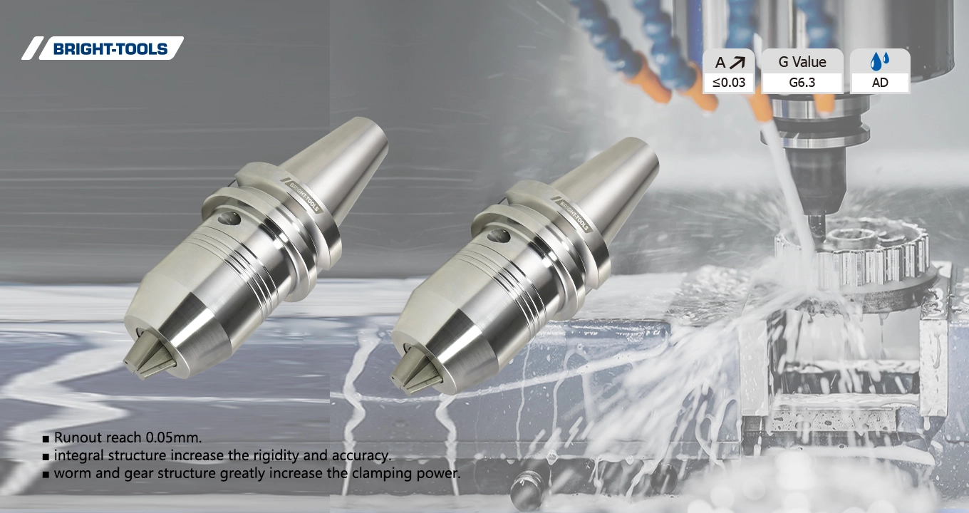 Mandrino per trapano CPU BBT, la struttura a vite senza fine e dell'ingranaggio aumenta notevolmente la potenza di serraggio. La struttura integrale aumenta la rigidità e la precisione. Runout reach 0.05mm. L'artiglio usa il processo di nitrurazione aumenta la resistenza all'usura e una maggiore durata dello strumento.